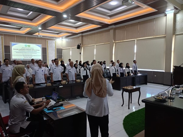 BONDOWOSO – Pemerintah Kabupaten (Pemkab) Bondowoso secara resmi membuka Pelatihan Dasar (Latsar) Calon Pegawai Negeri Sipil (CPNS) Golongan III Angkatan 33 Tahun 2025. Upacara pembukaan berlangsung khidmat di Ruangan Sabha Bina Praja Sekretariat Daerah Kabupaten Bondowoso hari ini, Rabu, 15 Oktober 2025.