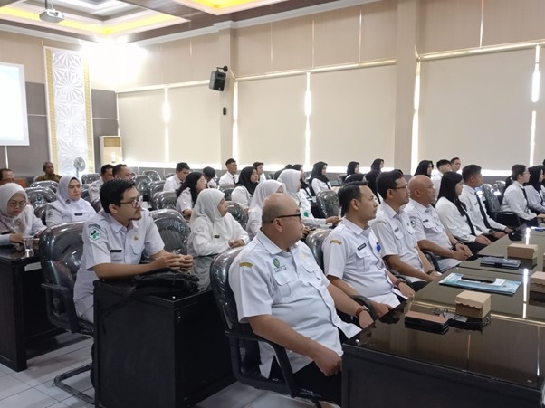 Pembacaan pakta integritas dan penyematan tanda peserta dilakukan secara simbolis oleh dua perwakilan tenaga kesehatan, yaitu dr. Vina Ayudhya Purwanto (Dokter Umum RSUD H. Koesnadi) dan drg. Ahmad Anderyanto (Dokter Gigi UPTD Puskesmas Taman Krocok).